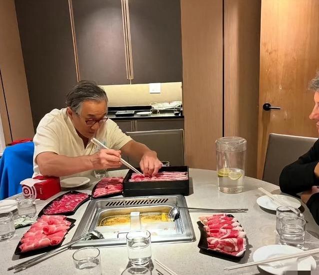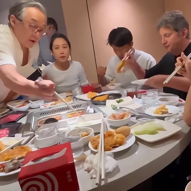 照片是在国外一家火锅店拍的。桌子围了一圈人,有中国人也有外国人,气氛热闹得像过年。火锅店是国内知名品牌,开到了国外,装潢气派,菜品丰富。成龙坐在那,笑得开心,手里还拿着筷子夹菜。这场景让人觉得亲切,就像自家亲戚聚会。